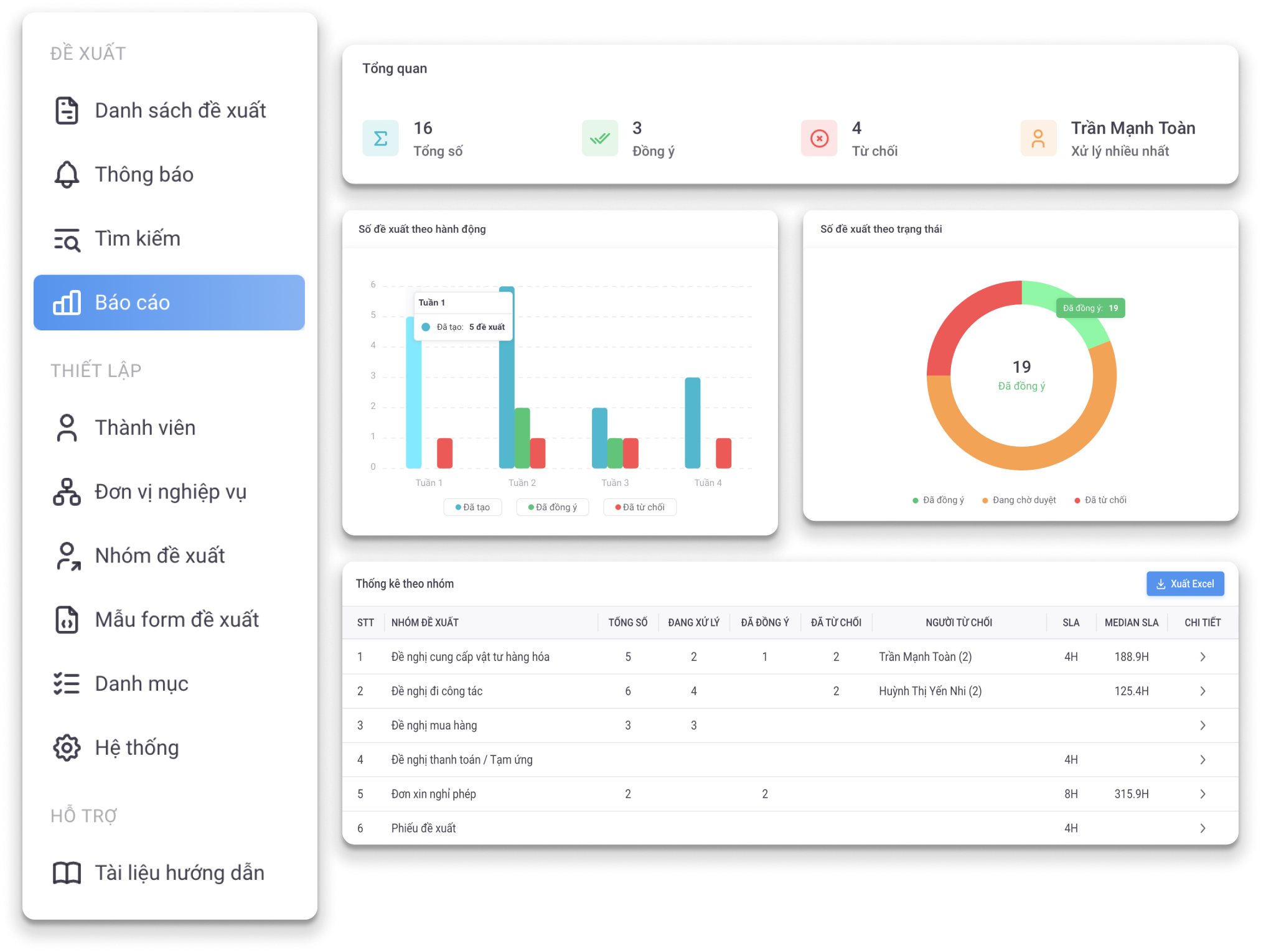 • Dữ liệu động: Trường thông tin linh hoạt, đáp ứng từng loại đề xuất cụ thể.